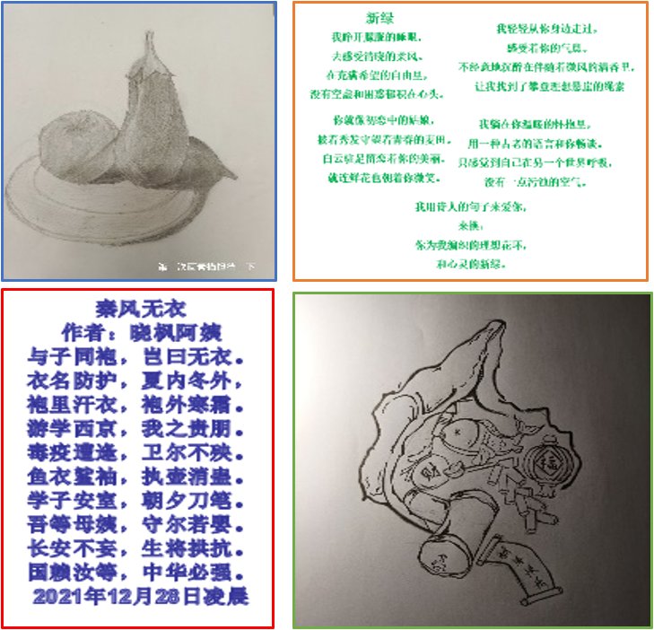 座谈会上大家畅所欲言,纷纷表示2021年是充满挑战的一年,上半年大家经受了高压的复习和高考的考验;下半年来到了长安大学,洋溢着青春的气息,满载着努力与奋进,开始了渭水之滨的大学生活。临近期末,新冠肺炎疫情突袭而至,让充满生机的校园按下了暂停键,但老师和同学们都没有退缩,都能够积极参与到疫情防控工作中,忘我奉献,共克时艰,体现了长大人顽强不屈的坚守与患难与共的担当。大家坚信通过全校上下的不懈奋战,定能够夺取疫情防控歼灭战的全面胜利,充满青春活力的校园定将很快回归。座谈会期间充满了欢声笑语,大家纷纷通过绘画、朗诵、诗歌等方式表达了新年祝福。